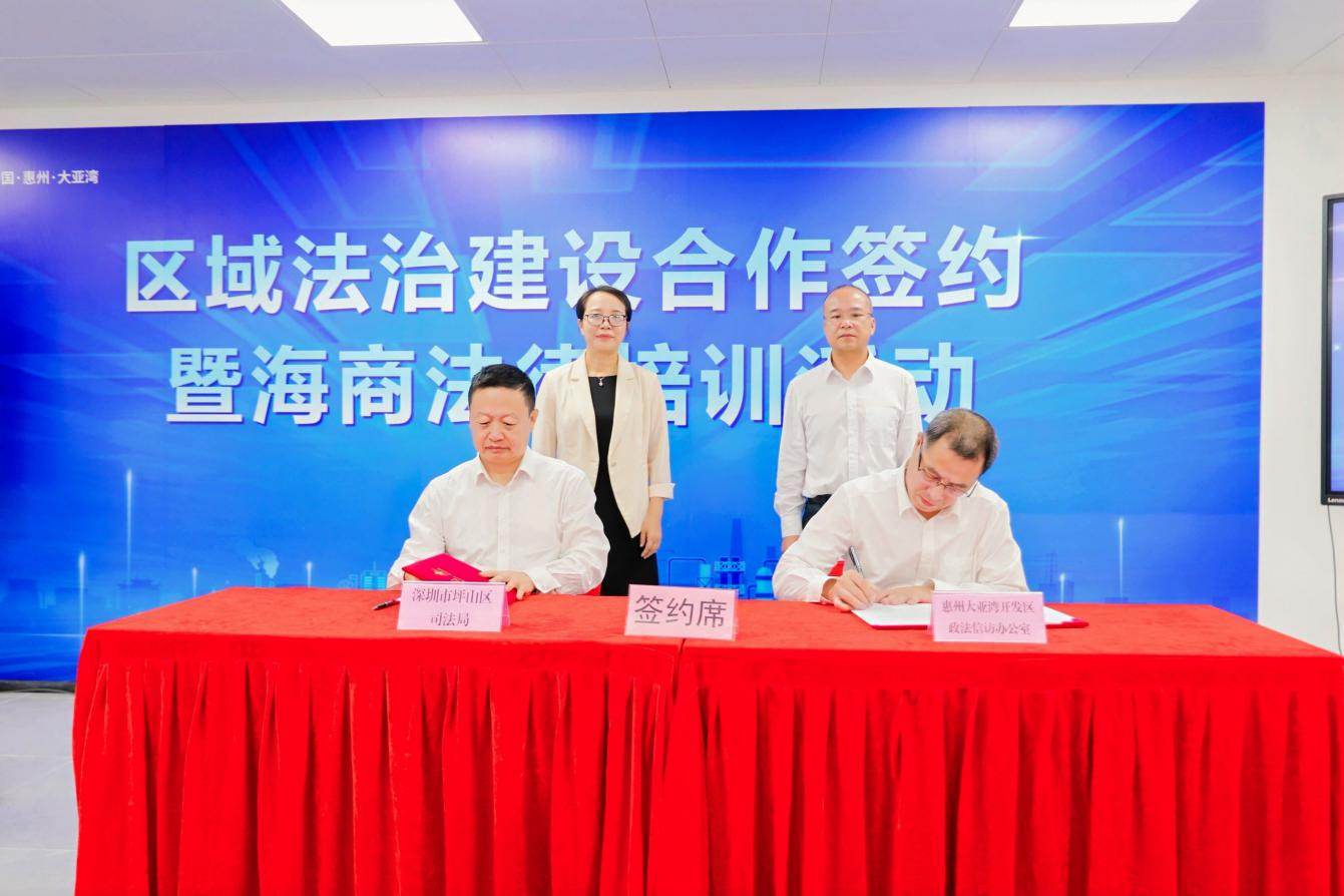 坪山区司法局与大亚湾政法信访办将以合作共赢、共同发展为目标,以创建规范有序、合作共享、充满创新活力、健康发展的法治化营商环境为导向,加强两地互学互动,建立人才培训交流机制,定期开展司法行政规范化建设和基层建设经验交流;建立日常工作协调机制;加强律师行业发展合作,建立法律援助案件异地协助制度和公证协同核查机制;加强仲裁、诉讼、调解多元解纷机制推广,围绕公共法律服务等领域,拓宽信息化应用场景。